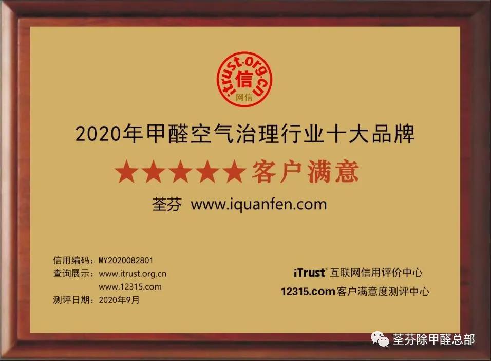 可以考慮荃芬氨基除甲醛——全屋治理服務,長效、不反彈,且分解甲醛不依賴紫外線。2020年9月份,荃芬除甲醛榮獲iTrust(互聯網信用評價中心)消費者滿意度第一。消費者的好口碑,就是荃芬品牌七年發展的源源動力!