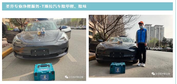 西安肖女士2021年購買一輛T斯拉汽車。在購買汽車時(shí),為了安全性能,購買了進(jìn)口汽車T斯拉,汽車的自動(dòng)駕駛、電池續(xù)航都比較滿意,但新車的刺鼻味道,令其很不舒服,經(jīng)了解甲醛可降低身體抵抗力,嚴(yán)重影響健康。為了家人和孩子考慮,肖女士選擇荃芬除甲醛,為愛車除甲醛、除味。
